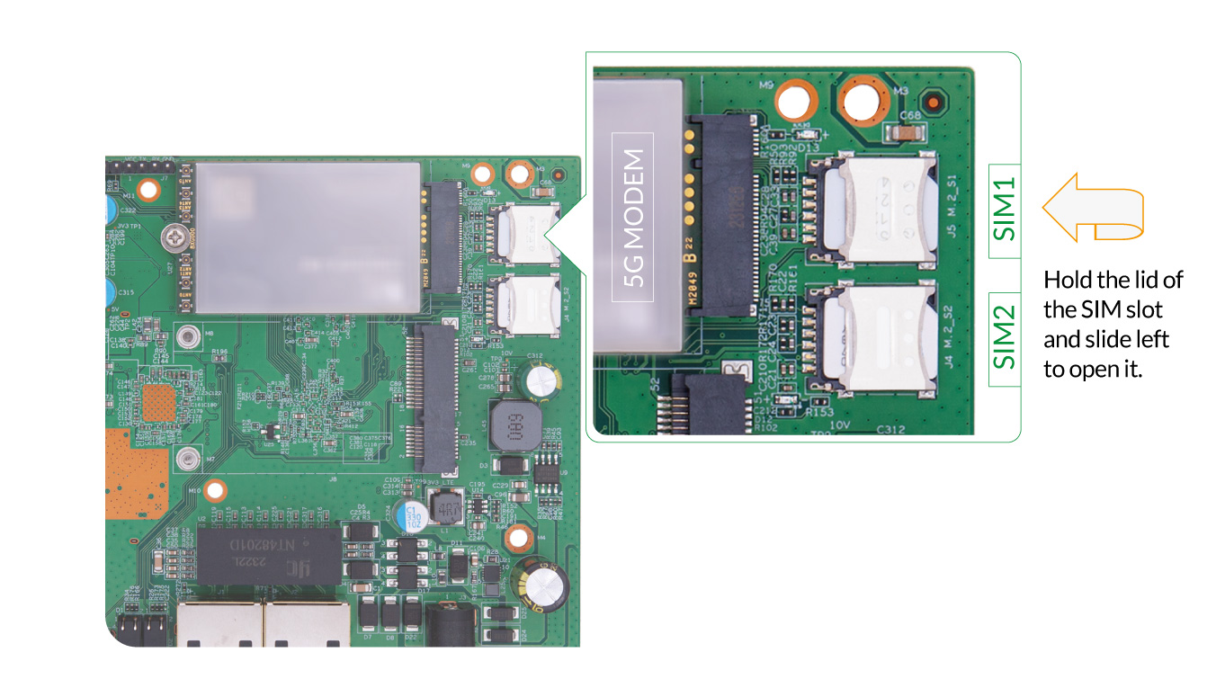 1. Locate the SIM1-2 slots in the top right corner of the motherboard.